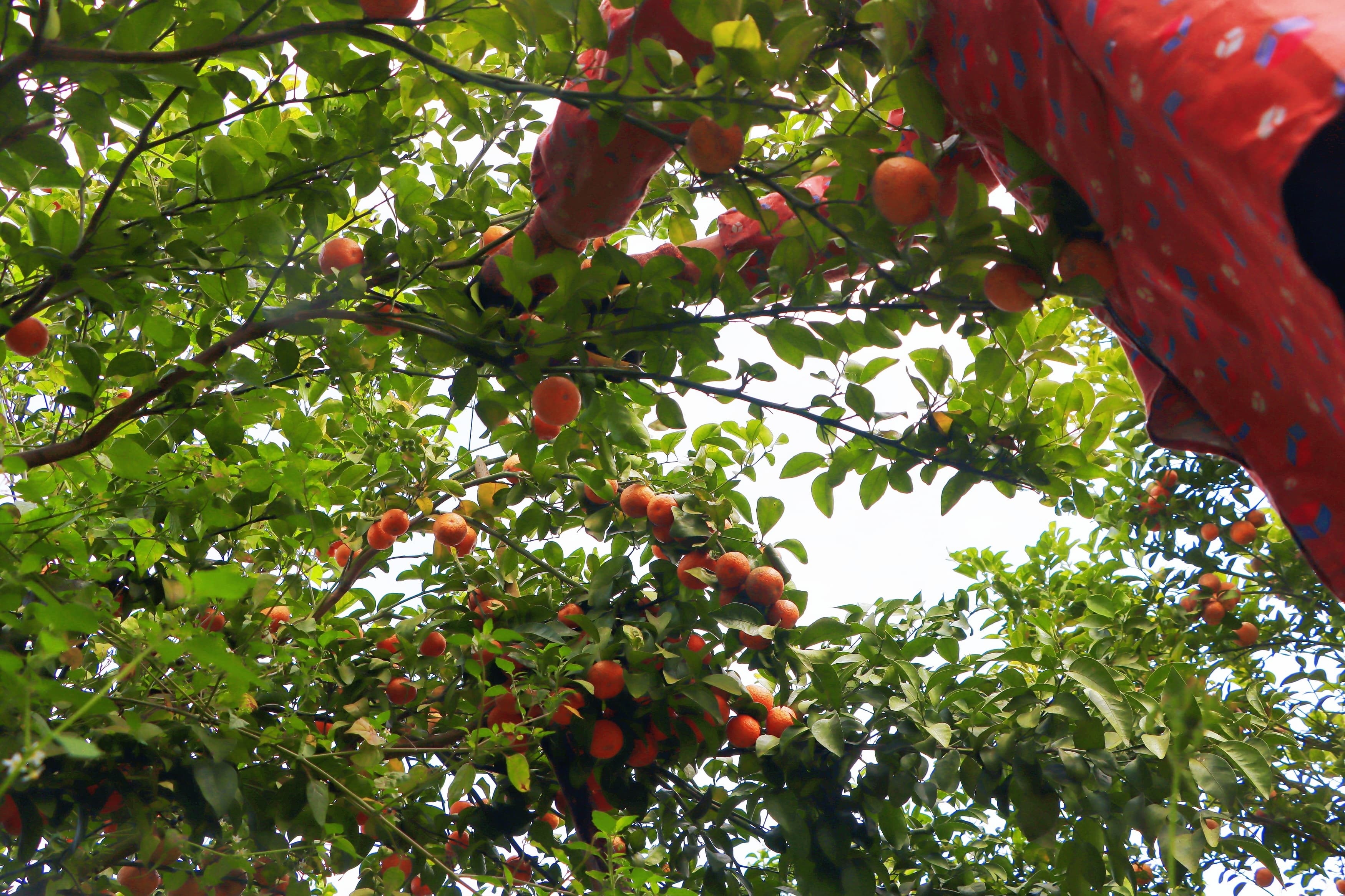 农户在熟练地采摘沙糖桔。(拍摄:张健珍)