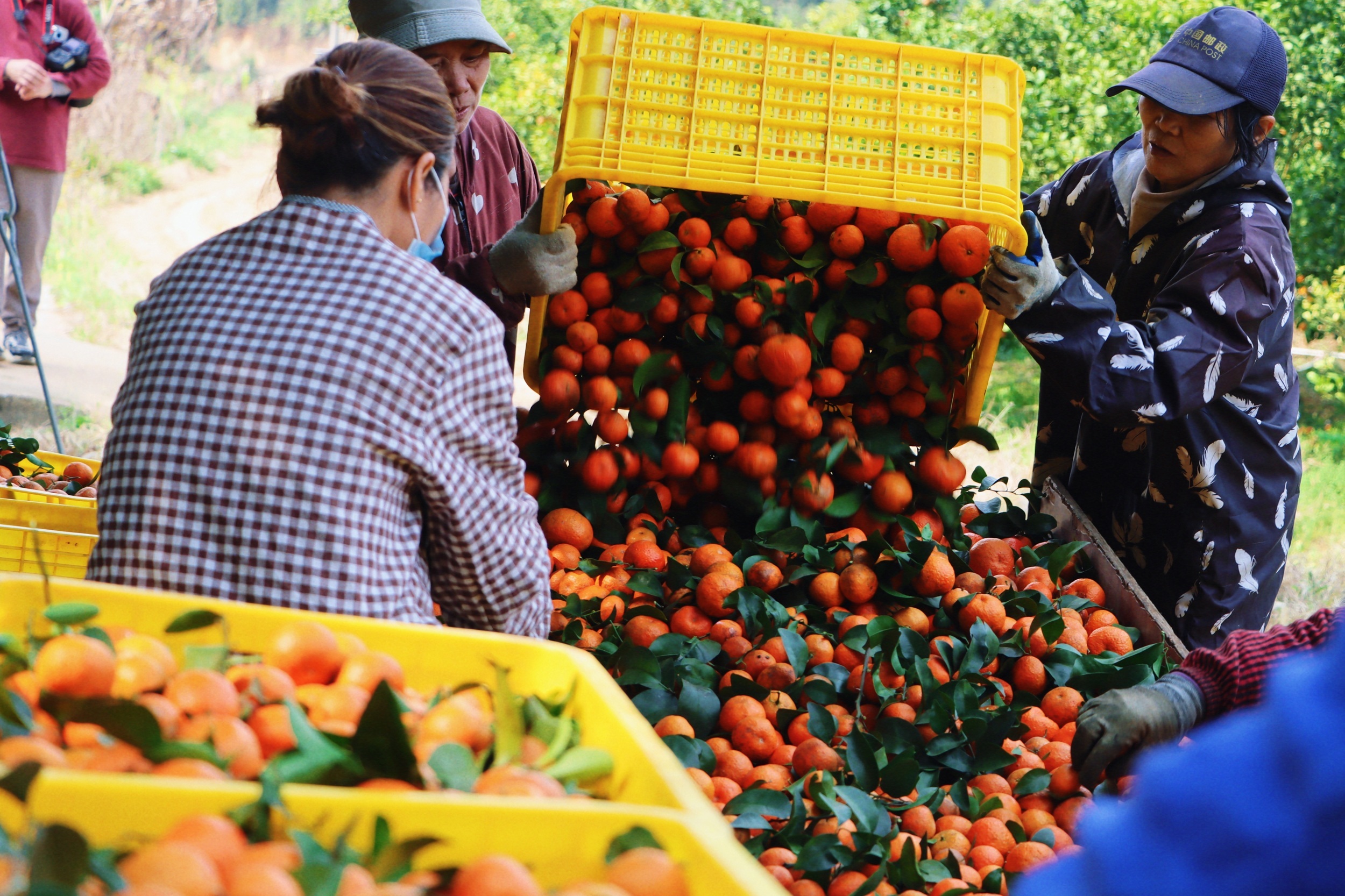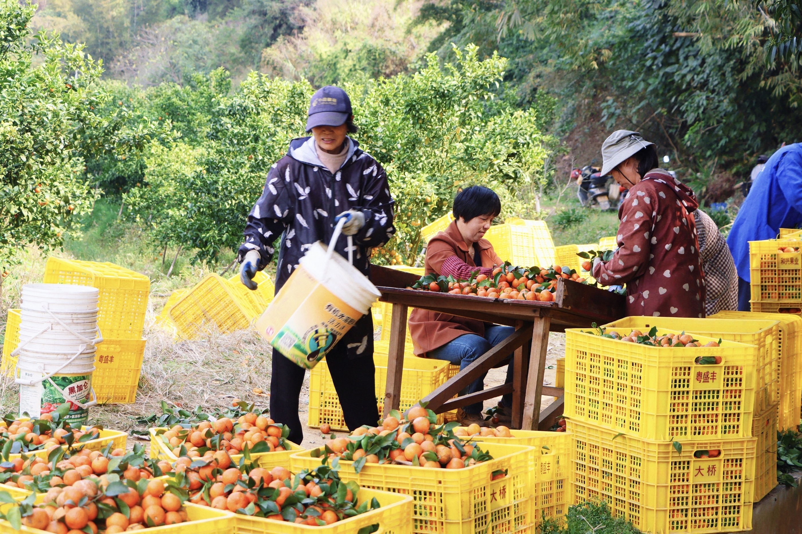 农户忙碌着分拣、打包砂糖橘。(拍摄:张健珍)